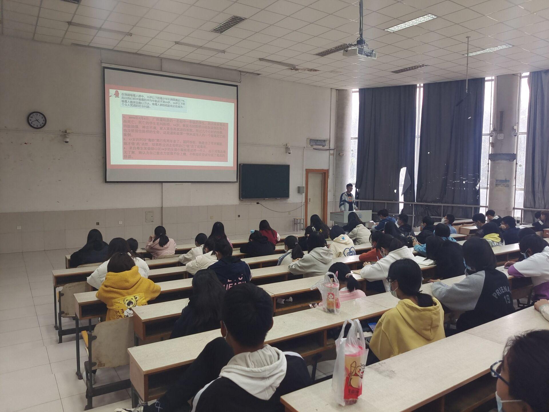 为贯彻落实党中央有关毒品预防教育的通知,进一步宣传毒品危害,增强学生的禁毒、防毒意识,形成“珍爱生命,远离毒品”的理念,打造平安校园,10月19日下午5点,英国365集团在2教201教室举办远离毒品宣讲会,全体学生干部参加此次活动。