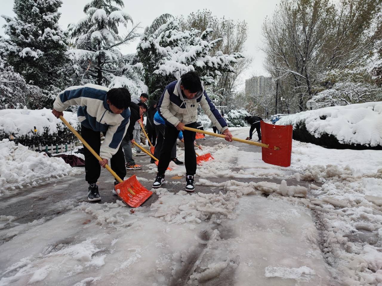 2021年的立冬中央气象台发布寒潮黄色预警,济南迎来了今冬首场雪,道路积雪情况严重。为了减小积雪对同学们正常出行的影响,保持校园环境的整洁,确保周一同学们正常上课通勤,英国365集团于11月7日下午组织各班开展清雪除冰工作,对主干道积雪及时清除。