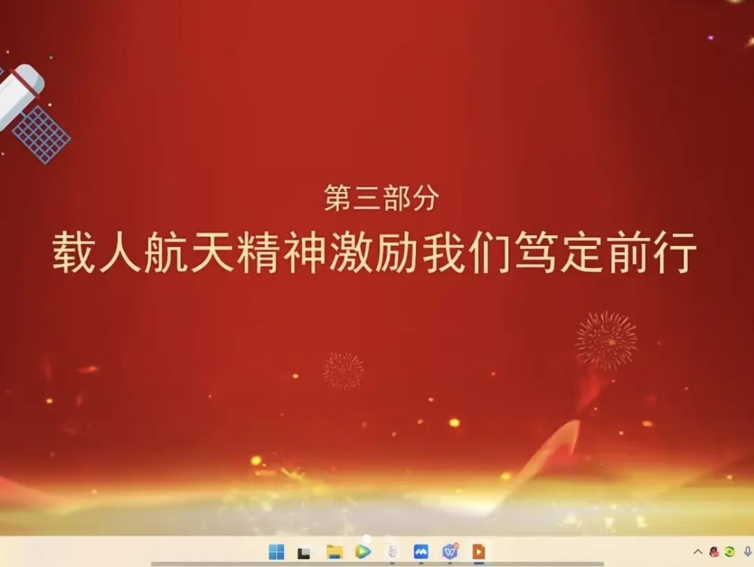 载人航天精神是中国共产党人精神谱系的重要组成部分,是以爱国主义为核心的民族精神和以改革创新为核心的时代精神的生动体现。通过本次宣讲,同学们深入学习了载人航天精神,在之后的学习工作中必将让理念付诸于实践,为实现中国载人航天新的突破积蓄力量,传承好这一份宝贵的民族精神财富。