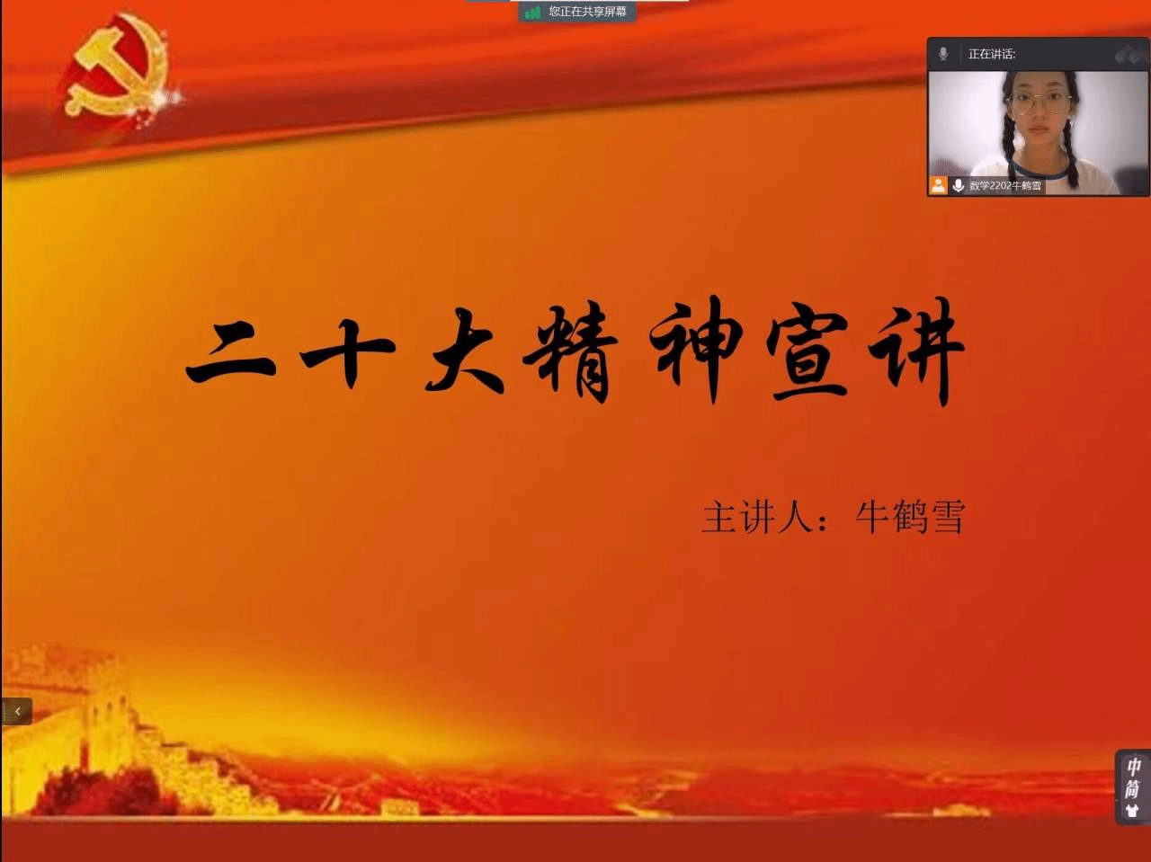 党和人民事业发展离不开一代又一代有志青年的奋斗奉献。为深入学习宣传贯彻党的二十大精神,号召广大青年坚定不移地听党话,跟党走,怀揣梦想又脚踏实地,以实践行动践行“请党放心,强国有我”的誓言,英国365集团“党的二十大精神”宣讲实践队于7月24日至7月27日开展第三期线上宣讲实践活动。