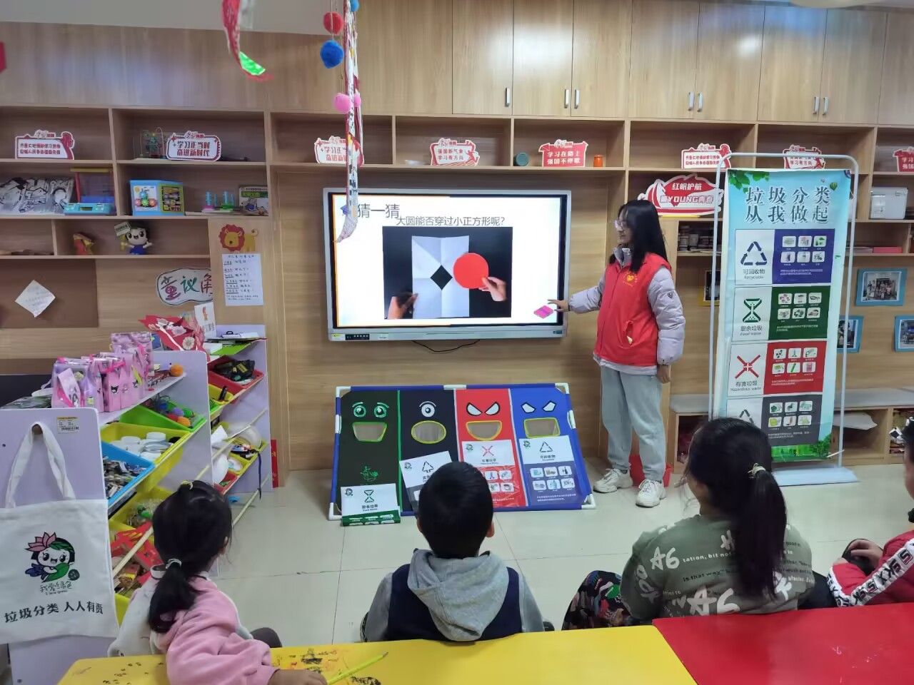 活动伊始,志愿者向同学们展示了一个有趣的实验——一个大圆能否穿过一个小正方形。同学们立即动手操作,用实践探索其中的奥秘与技巧。随后,志愿者教同学们将一张纸条翻转180°后首尾相接,形成了一个没有终点的环——莫比乌斯环。这个看似简单的操作,却揭示了一个深奥的数学原理。通过志愿者对莫比乌斯环实际应用的讲解,同学们不仅了解了过山车的原理,还探究了克莱因瓶为何永远装不满水。这种直观的教学方法使同学们对知识产生了更深刻的印象,也激发了他们对数学的兴趣。此外志愿者还介绍了勒洛四面体以及黄金分割率等概念,使同学们深刻感受到数学与生活的紧密联系。此次活动的成功开展,不仅培养了孩子们的动手能力,还拓宽了他们的数学逻辑思维,同时为志愿者们提供了一个奉献爱心、充实自我的个人平台。