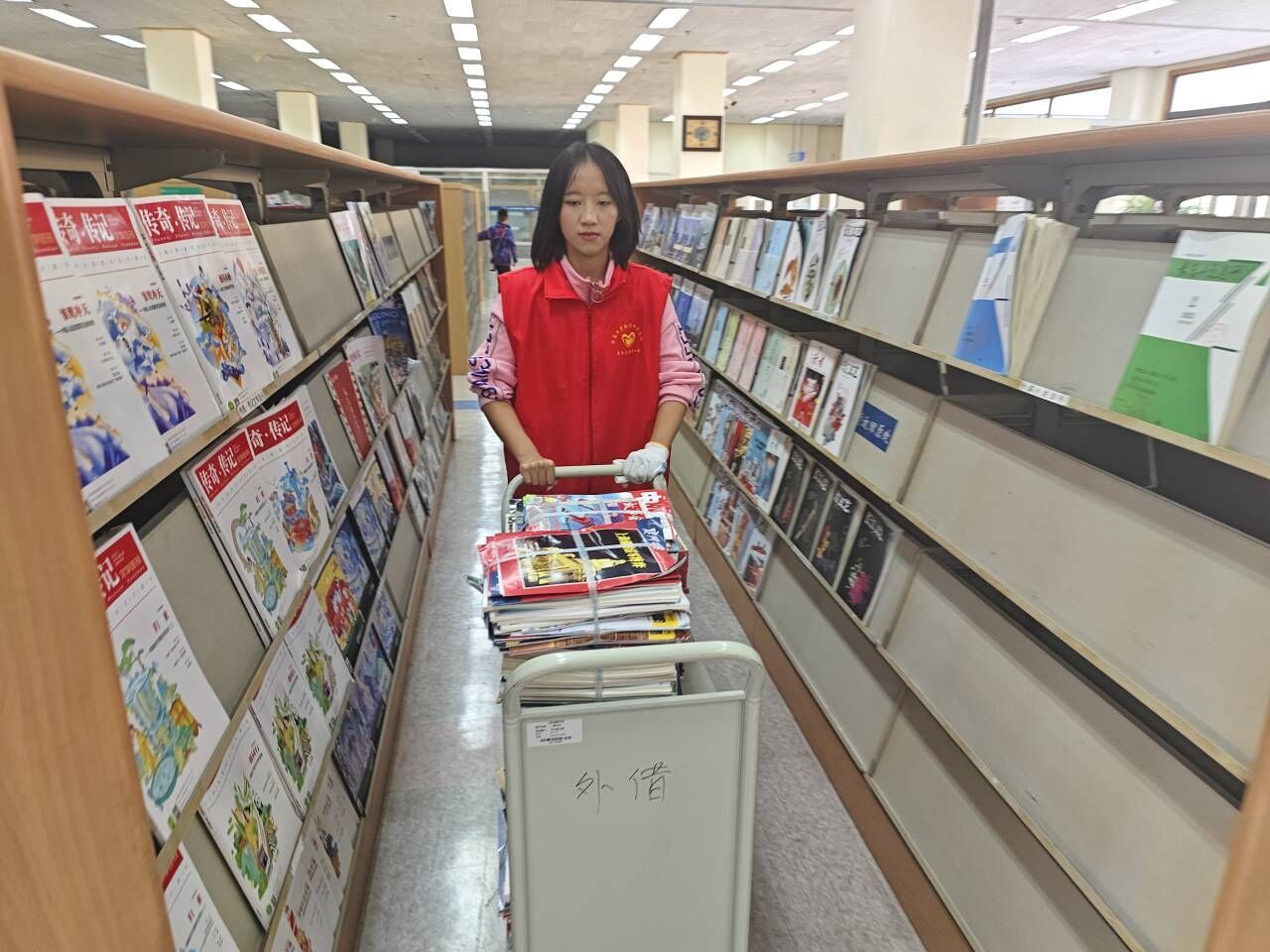 活动伊始,走进图书馆的志愿者们身穿红色马甲,以团队合作的方式有条不紊地完成了书籍搬运任务。同时,志愿者们还协助图书馆内工作人员,将归还的书籍按照类别细心地摆放在各自的书架上。闲暇时刻,志愿者们在书香浓郁的海洋之中徜徉,感受着文字世界的博大智慧和知识的魅力。此次志愿活动中,志愿者们用实际行动展现了良好的团队协作能力,不仅帮助图书馆工作人员整理书籍,使之井然有序,更提升了书香氛围,方便读者寻觅所需之书。