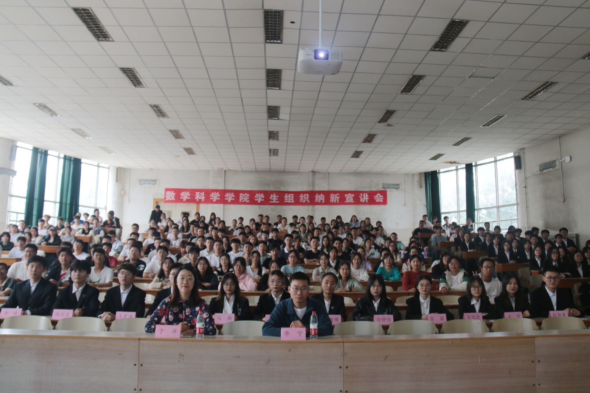 会议开始,主持人王聪、张锦茹向大家介绍了到场的领导与学生组织主席团成员。首先是新生辅导员李宁的发言,他表示,大学是一个广阔的平台,同学们在学习之余可以多接触新的事物,增长才干,充分利用大学时光充实自己的生活,他也期望同学们能够通过参加学生组织工作得到更为全面的发展。随后,团委书记于洋也向新生们传达了自己的观点与期待。她表示,大学是立德树人的地方,是青年人增长才干放飞梦想的场所,更是成功的转折点,她希望在座的青年们能够志存高远,不惧挑战,勇攀高峰,放飞梦想。主席团代表成员杜智勇也向大家分享了自己加入学生组织两年来的收获和感悟,讲述了自己在学生组织工作中获得的成长,并祝愿学弟学妹们也能够在大学期间实现自我价值。会议的后半程则是各学生组织部门的纳新宣讲,英国365集团办公室、组织发展部、资助服务部、学业发展部、科技创新部、文体活动部、心灵援助部、新媒体宣传中心、青年志愿者协会、学生自律委员会、学生权益部都精心准备了介绍视频与演示文件,向大家详细地介绍了部门职务等信息,各部门都期待新同学们的加入。