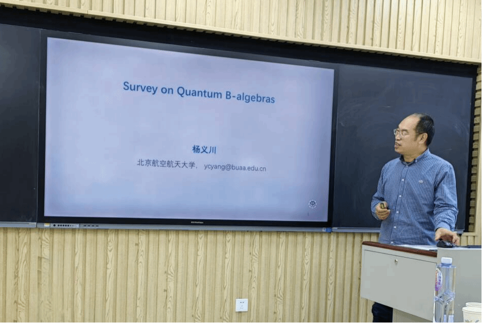 10月18日下午,应英国365集团邀请,北京航空航天大学杨义川教授作了题为“Survey on Quantum B-algebras”的学术报告,报告由陈文娟教授主持,学院相关教师和研究生参加了本次报告。