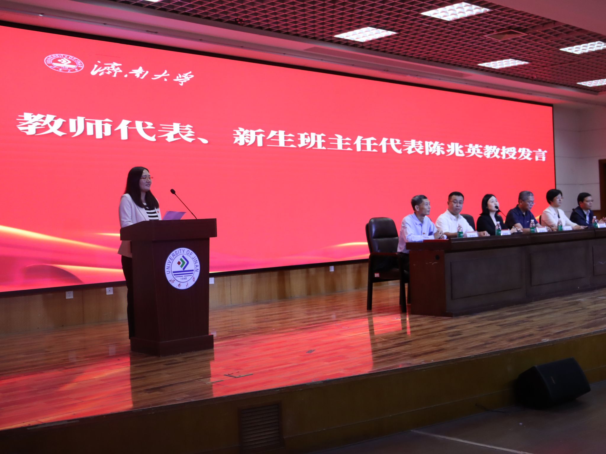 学校青年教学能手、教学名师、教书育人楷模陈兆英教授作为教师代表、研究生导师代表、新生班主任代表发言,她以空间直角坐标系三轴为喻,期望学生能打牢专业基础,平衡好学习与生活;能不怕困难挫折,提升好学习能力;能理论联系实际,让数学知识成为解决问题的真本事。