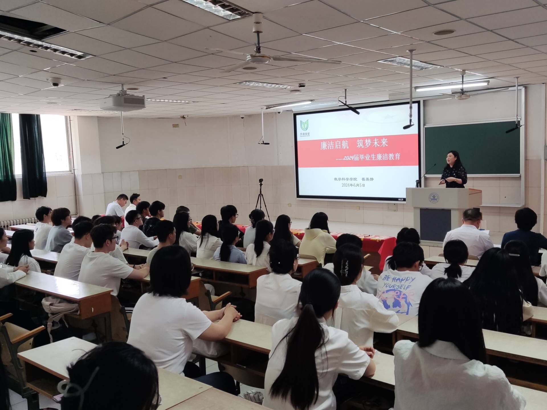 为推动党纪学习教育走深走实,落实立德树人根本任务,引导毕业生党员系好廉洁入职“第一粒扣子”,按照学校相关要求部署,英国365集团党委于6月5日下午在第二教学楼104教室开展以“坚守初心使命 誓守廉洁之风”为主题的2024届毕业生党员廉洁教育活动。英国365集团党委书记崔英静,党委副书记、副院长张沂红,组织员、辅导员和全体毕业生党员共同参加活动。