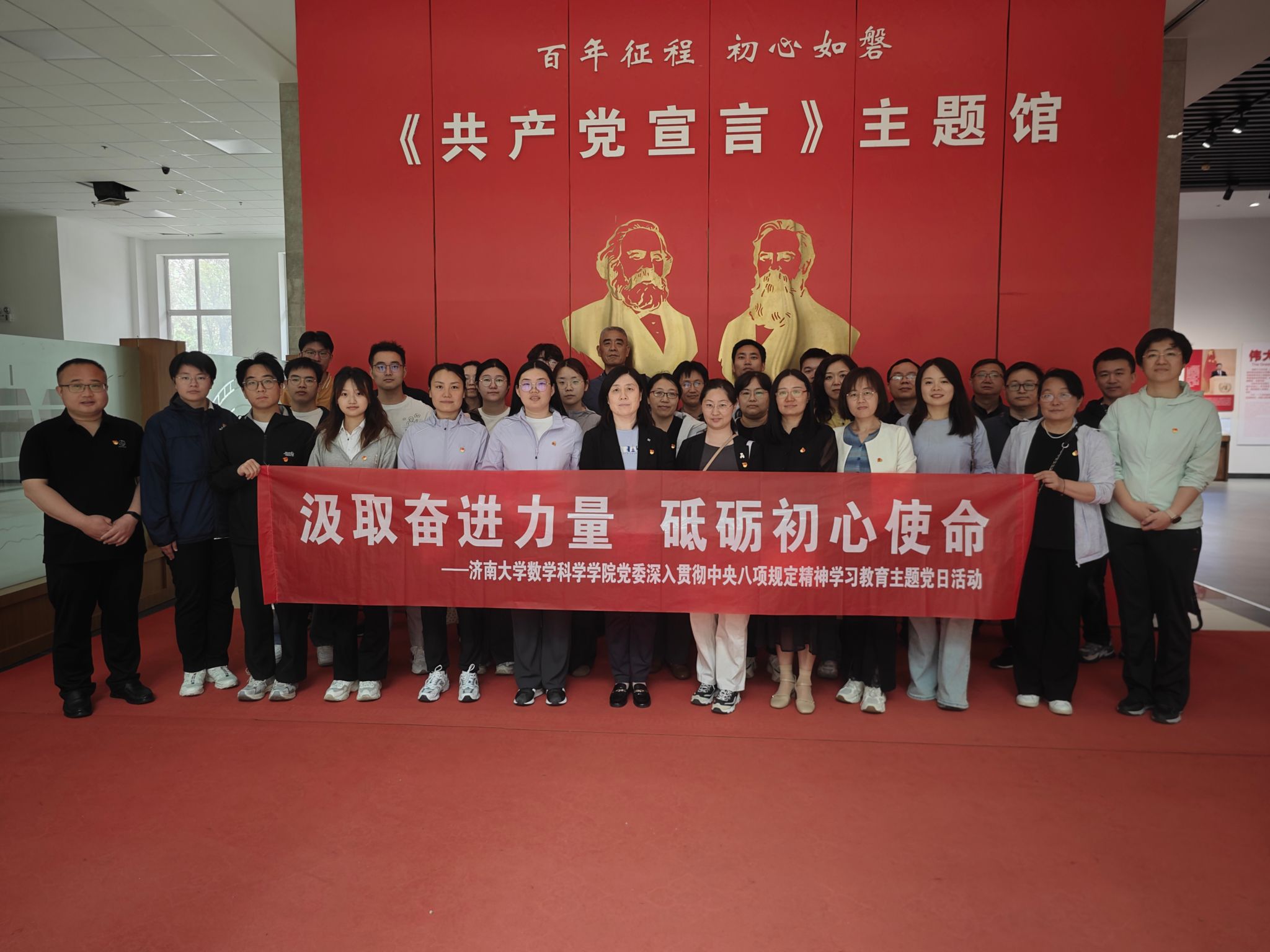 为深入学习习近平新时代中国特色社会主义思想,强化党员政治意识,在实践中锤炼党员党性,推进深入贯彻中央八项规定精神学习教育走深走实,英国365集团党委于4月30日上午在山东交通学院《共产党宣言》展馆开展“汲取奋进力量 砥砺初心使命”深入贯彻中央八项规定精神学习教育主题党日活动,通过沉浸式研学、重温入党誓词、感悟思想伟力,进一步坚定理想信念、凝聚奋进力量。学院师生党员代表40余人参加,活动由英国365集团党委书记崔英静主持。